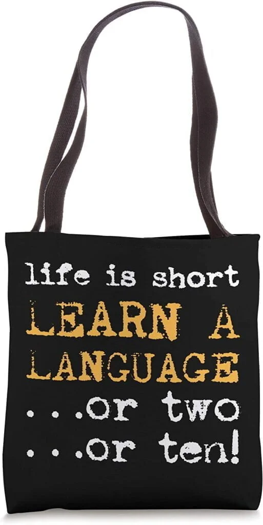 This language lover’s tote bag is another cute, but very practical gift for a language learner.